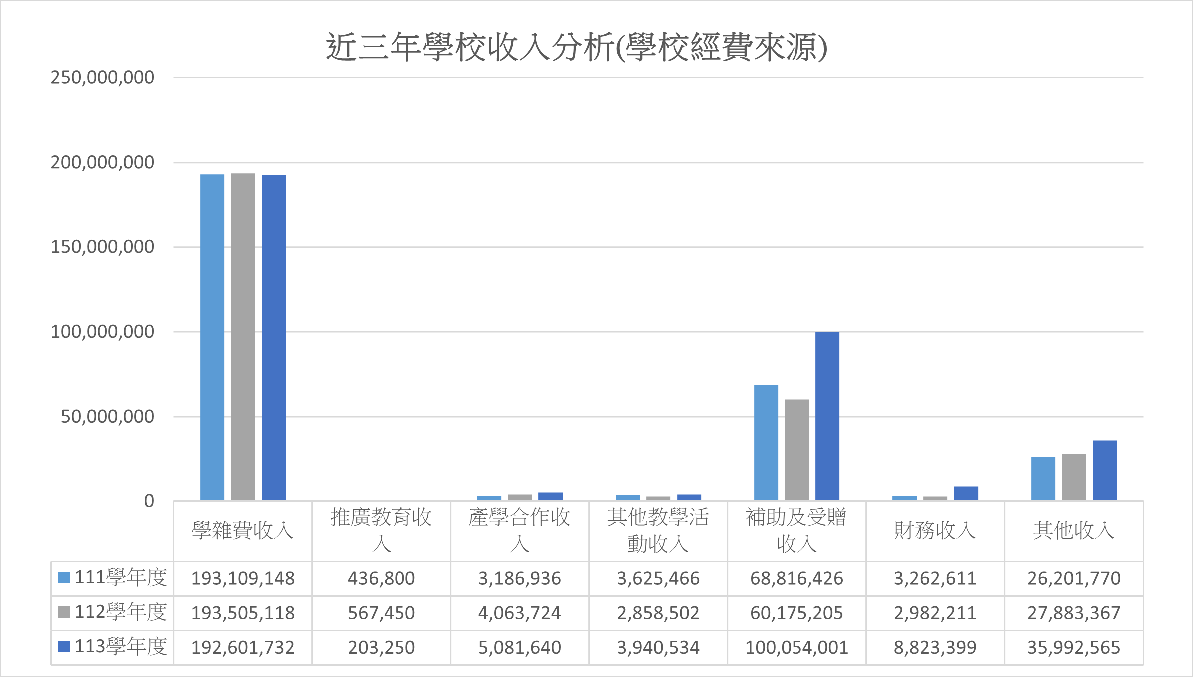 說明1:學雜費收入隨學生人數減少,逐年減少。